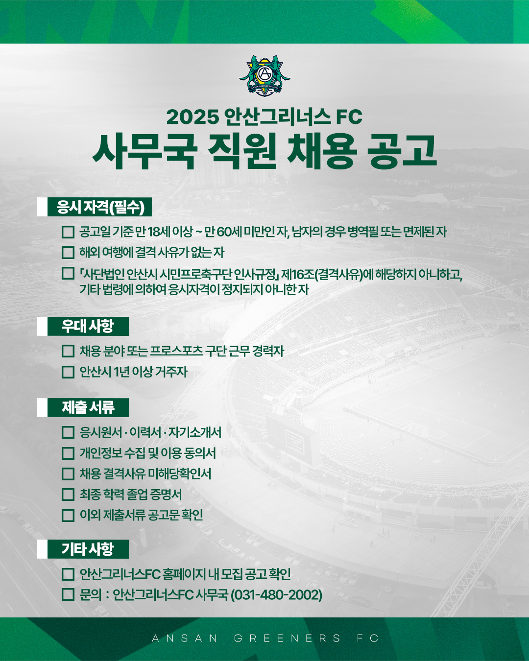 [공지] (사)안산시시민프로축구단 사무국 직원 채용 공고
