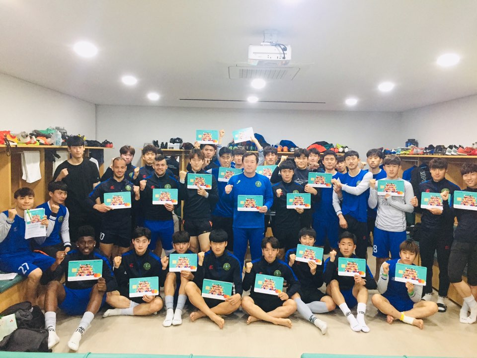 안산, ‘K리그 축덕카드’ 단체 가입 안산 그리너스 FC(이하 ‘안산’)가 24일(수) 클럽 하우스에서 K리그 타이틀 스폰서인 KEB하나은행에서 출시한 'K리그 축덕카드'에 가입했다. |