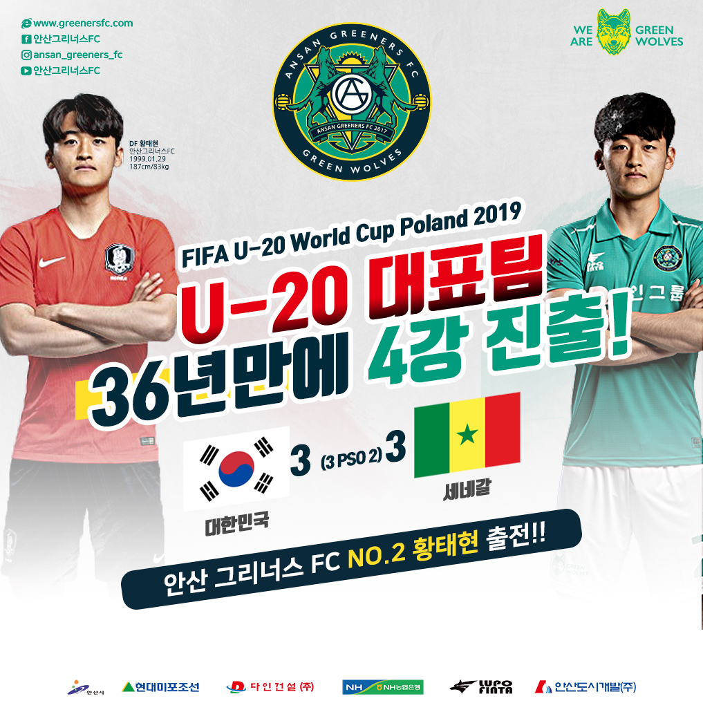 ![]() 지난 9일 폴란드 비엘스코-비아와 경기장에서 열린 ‘2019 FIFA U-20 남자 월드컵(이하 U-20 월드컵)’ 8강 세네갈과의 경기에서 한국 20세 이하(U-20) 축구 대표팀이 치열한 접전 끝에 승부차기에서 3-2로 앞서며 36년 만에 4강 진출을 확정지었다. 4강 신화 재현 현장에는 안산 그리너스 FC(구단주 윤화섭)의 황태현이 있었다. 현재 U-20 월드컵에서 뛰고 있는 황태현은 탄탄한 경기력과 부드러운 카리스마로 대표 팀의 주장을 맡고 있고, 8강전까지 총 5경기에서 모두 선발로 출전했다. 오른쪽 측면과 중앙 수비 포지션을 소화하며 정정용호에서 철벽 수비라인을 구축하고 있다. 지난 23일 기자회견장에서 “포르투갈과 아르헨티나는 각자의 대륙에서 최정상급의 팀이다. 하지만 우리 또한 아시아 대륙에서 잘 했기 때문에 여기 까지 올라왔고, 지금 이 자리에 있는 것이다. 우리만의 색을 가지고 준비한 전술로 경기에 임하면 좋은 결과를 내지 못하리라는 법은 없다.” 또한 “마지막 에콰도르와의 평가전에서는 무실점을 기록했다. 그로 인해 수비수로써 자신감을 갖고 대회에 임할 수 있다.”라며 이번 U-20 월드컵에 대한 자신감을 내비췄다. 안산 그리너스의 윤화섭 구단주는 “1983년 이후 36년 만에 U-20 월드컵 4강 진출을 재현 한 우리 U-20 대표팀이 지난 경기에서 끝까지 포기하지 않고 열심히 뛰는 모습에 큰 감동을 받았다. 정말 축하드린다. 또한, 우리 자랑스러운 안산 소속 황태현 선수의 리더십에 박수를 보낸다. 남은 4강전에서도 부상 없이 끝까지 열심히 뛰어주길 바란다. 우리 국민들도 우리 선수들이 새로운 역사를 쓸 수 있도록 열심히 응원하겠다.”고 전했다. 한편 한국 20세 이하(U-20) 축구대표팀은 오는 12일 오전 3시 30분(이하 한국시간) 폴란드 루블린 경기장에서 치뤄지는 에콰도르와의 월드컵 4강전에서 새 역사에 도전한다. |