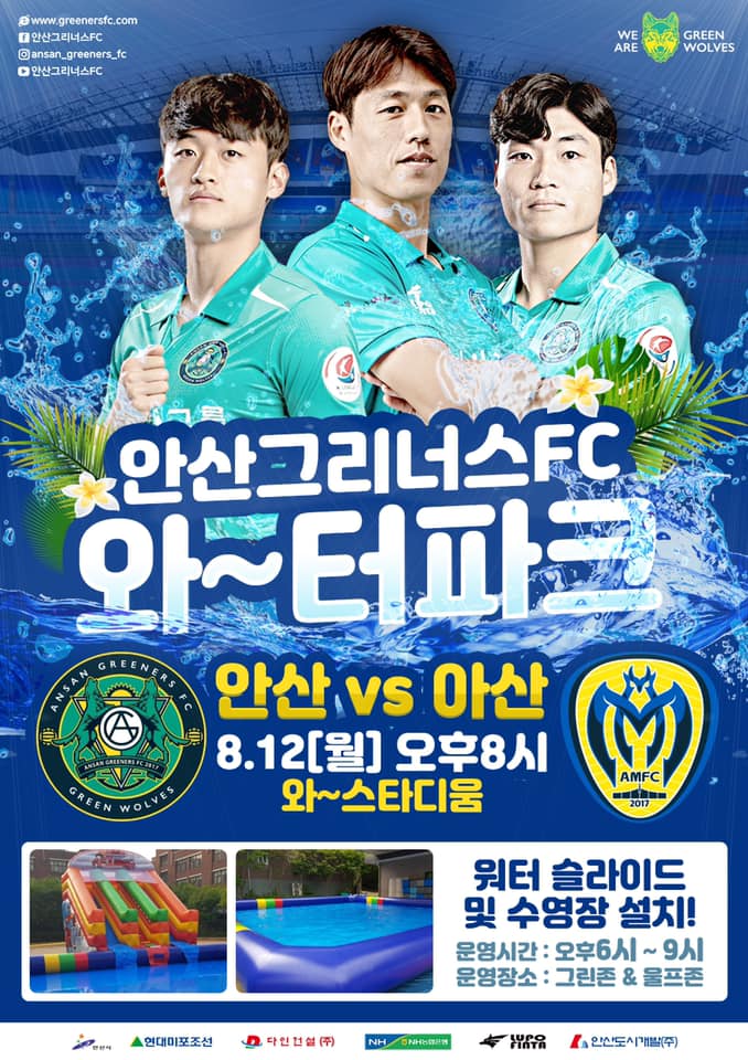 양 팀의 상대전적은 2승 2무 6패(안산 기준)로 아산이 우위를 점하고 있다. 그러나 올 시즌 기록을 보면 2경기에서 안산이 1승 1무를 기록하며 아산을 상대로 강한 모습을 보인다. 현재 리그 5위 안산(승점 33)과 4위 아산(승점 34)의 승점차는 단 1점, 플레이오프권 진입을 위한 치열한 경쟁이 예상된다. 지난 U-20 월드컵에 출전해 결승 진출의 역사를 쓴 안산 황태현과 아산 오세훈의 맞대결도 놓칠 수 없는 관전 포인트이다. 특히 이번 경기는 아산의 주축 선수였던 고무열, 안현범, 김도혁을 포함한 14명의 의경 선수들이 지난 부산전을 끝으로 오는 12일 전역을 하게 되면서 빈자리를 채울 수 있을 지가 주목된다. ▲ 23R 홈경기 이벤트 안내 안산이 시원한 여름을 보낼 수 있도록 ‘와~터파크’로 팬들의 응원 열기를 더해 갈 예정이다. 와~터파크는 오후 6시부터 개장해 9시까지 운영되며, 경기장 그린존(E구역)과 울프존(W구역) 외곽에 수영장과 워터슬라이드 등 각종 놀이시설과 편의시설이 설치된다. 경기장 내에서는 ‘하프타임 퀴즈 이벤트’를 통해 호텔스퀘어 숙박권, 바이킹스워프 식사권 등 다양한 경품을 제공한다. 또한 경기 종료 후 최고의 플레이를 보여준 선수에게 주어지는 Men of the match를 선정해 바이킹스워프 식사권 2매(제공 : 바이킹스워프)를 시상 할 예정이다. 홈경기 티켓 및 이벤트와 관련된 자세한 내용은 안산 그리너스 FC 홈페이지(www.greenersfc.com)와 구단 공식 SNS, 티켓링크를 참고하면 된다. <장외 이벤트> <장내 이벤트> |