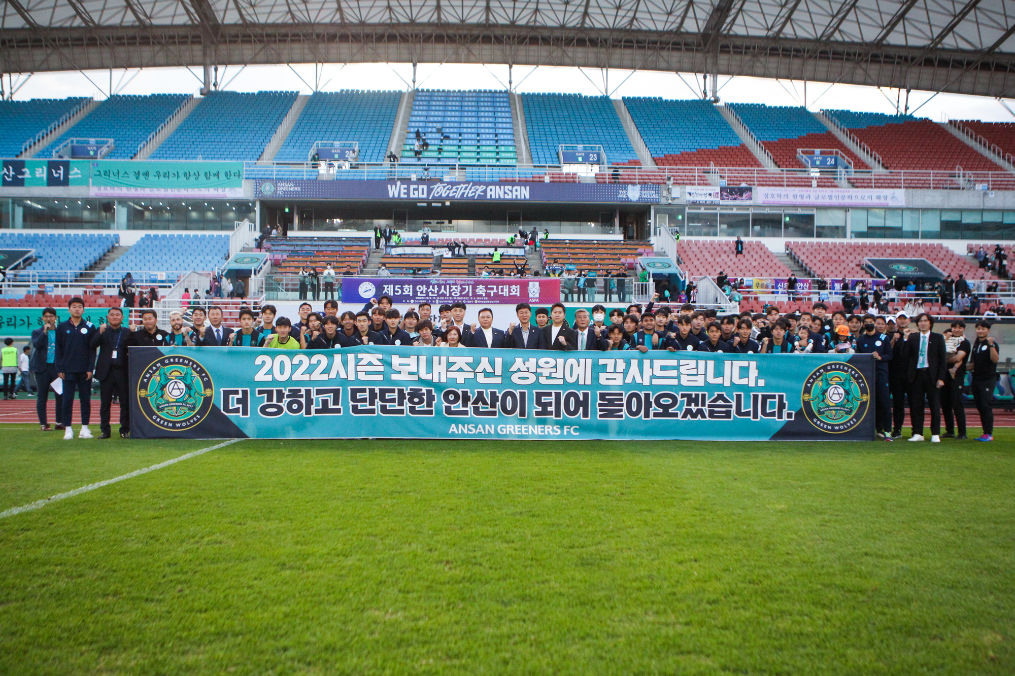 ![]() 안산그리너스(구단주 이민근, 이하 안산)가 대전하나시티즌에 패하며 정규리그 최종전을 마쳤다. 안산은 15일 오후 3시 안산 와~스타디움에서 열린 '하나원큐 K리그2 2022' 44라운드 최종전에서 대전에 1-2로 패배했다. 이로써 안산은 2022시즌을 승점 37점 리그 9위로 마감했다. 안산은 이찬우(GK), 이준희, 김영남, 안성민, 아스나위, 이상민, 송진규, 박동휘, 두아르테, 김경준, 김보섭이 선발로 나섰다. 안산은 순위 싸움이 한창인 대전을 상대로 안정적인 경기를 펼쳤다. 강하게 나오는 대전을 맞아 공격진의 속도를 앞세워 반격했다. 전반 11분 김경준이 페널티박스 오른쪽을 빠르게 돌파해 날카로운 슈팅을 시도했다. 대전과 공격을 주고받던 안산은 전반 12분 박동휘의 파울로 페널티킥을 허용, 선제 실점으로 이어졌다. 안산은 만회를 위해 전반 21분 김보섭을 빼고 최건주를 투입했다. 스피드가 좋은 최건주는 대전의 오른쪽 뒷공간을 공략하며 적극적인 돌파와 크로스로 공격을 주도했다. 좋은 분위기를 유지하던 안산은 전반 37분 이진현에게 추가 실점하며 전반을 0-2로 마쳤다. 후반 들어 권영호와 변승환을 투입해 흐름을 가져오기 시작한 안산의 추격이 대단했다. 안산은 후반 14분 코너킥 기회를 살렸다. 두아르테가 찬 코너킥을 이준희가 헤딩으로 문전에 붙이자 큰 키의 권영호가 머리로 밀어넣었다. 안산은 투지를 불태웠다. 후반 28분 대전에 측면이 허물어지면서 위기를 맞았지만 이준희가 카이저에게 향하는 크로스를 몸을 날려 막아냈다. 분전하던 안산은 후반 33분 김경수와 김예성으로 교체 카드를 모두 소진하며 동점을 노렸으나 아쉬운 1-2 패배로 시즌을 마쳤다. |