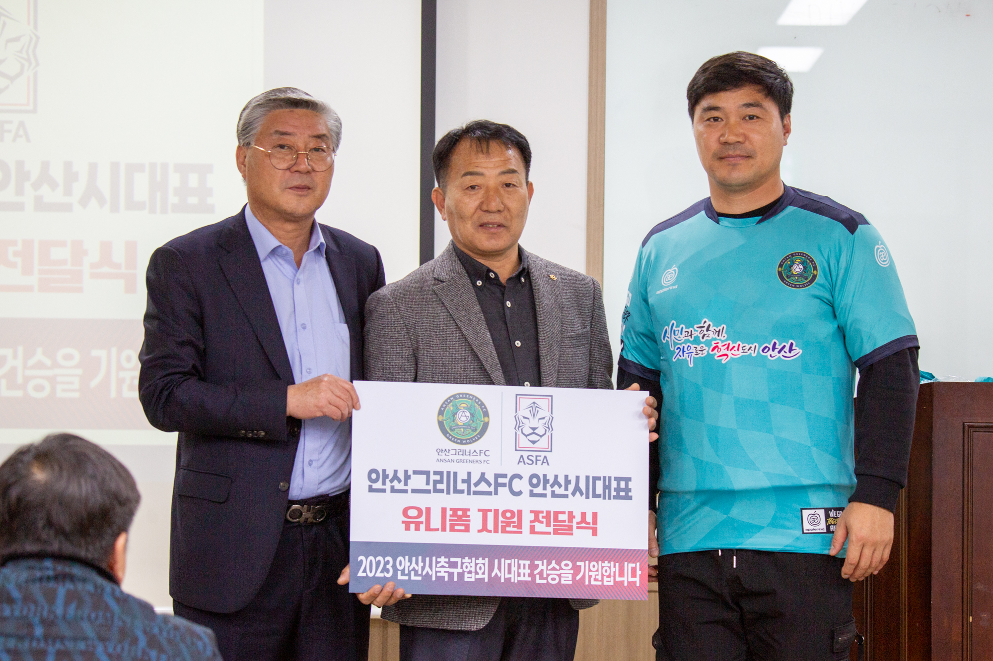 | 안산그리너스FC, 안산시 축구협회에 ‘유니폼 지원‘ 전달식 가져 | |