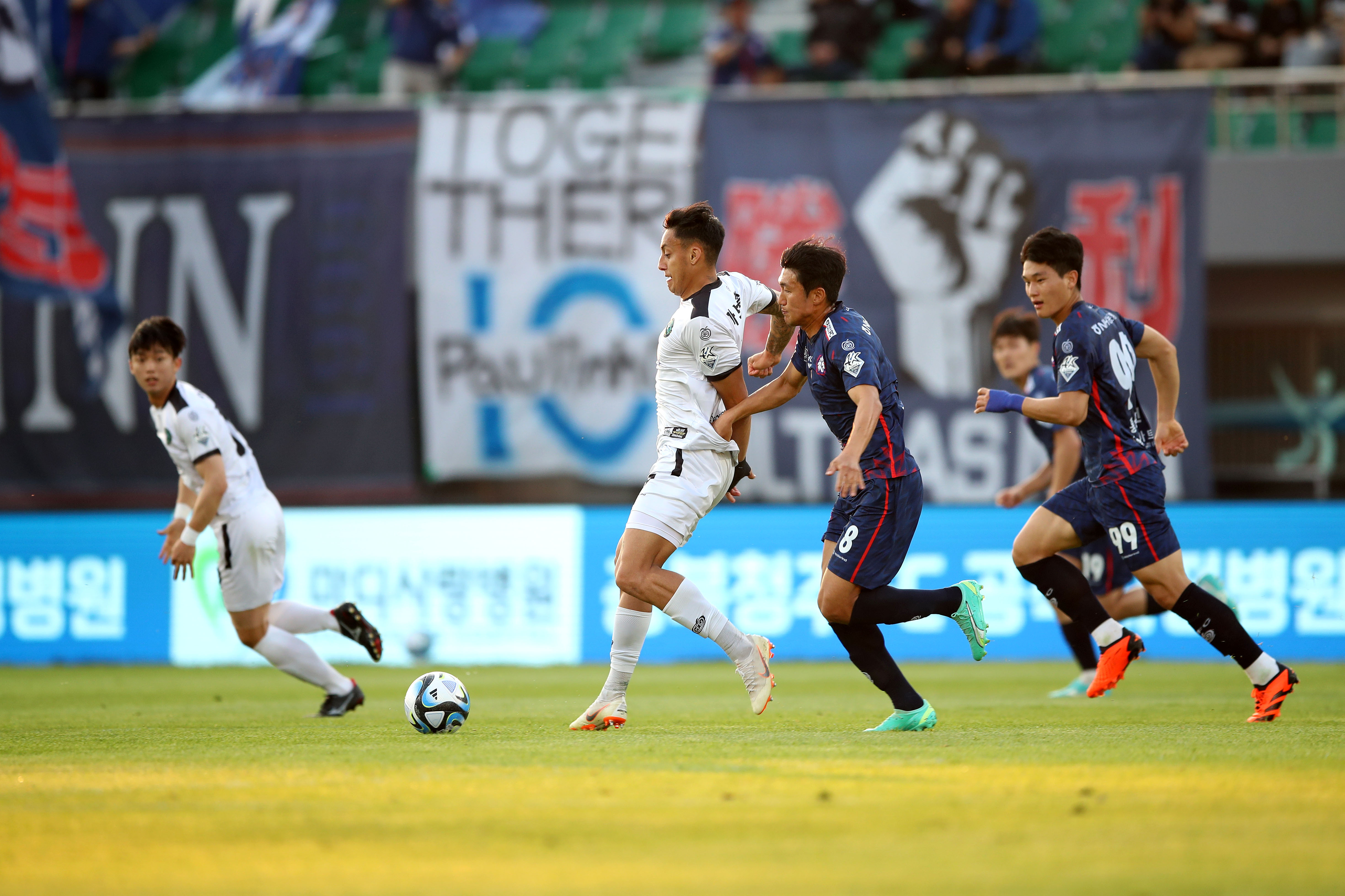 ![]() 안산그리너스FC(구단주 이민근, 이하 안산)가 충북청주FC 원정에서 승리에 실패했다. 안산은 14일 오후 6시 30분 청주종합운동장에서 열린 충북청주와 ‘하나원큐 K리그2 2023’ 13라운드 원정 경기에서 0-3으로 패했다. 이날 경기에서 안산은 3-4-1-2로 나섰다. 투톱에는 이근호와 가브리엘이 앞장섰고, 2선에는 이현규가 받혔다. 측면에는 김채운과 김재성이 퍼졌다. 완드류와 김범수가 중원을 형성했다. 김정호-유준수-정용희가 스리백 수비, 이승빈이 골문을 책임졌다. 안산이 초반부터 가브리엘을 중심으로 충북청주를 흔들었다. 이근호가 전반 10분 가브리엘의 돌파에 의한 패스를 오른발 슈팅으로 이었으나 살짝 빗나갔다. 가브리엘이 슈팅에 가세했다. 그는 전반 15분 단독 돌파하면서 때린 슈팅이 충북청주 골키퍼 박대한 품에 안겼다. 전반 중반 이후 흐름이 충북청주에 넘어가기 시작했다. 이후 충북청주의 공세를 맞이했지만, 이승빈의 선방으로 실점을 내주지 않았다. 안산은 후반 6분 홍원진에게 선제 실점을 내주며 경기가 점점 더 어려워 졌다. 실점 후 정재민을 투입하며 공격에 힘을 실어줬다. 그런데도 후반 19분 피터, 24분 이민형에게 연속 실점하면서 격차는 더 벌어졌다. 안산은 후반 27분 김경준과 정지용을 동시 투입하며 만회골 의지를 드러냈다. 끝까지 최선을 다했으나 경기를 뒤집지 못하며 0-3 패배로 아쉽게 마쳤다. |