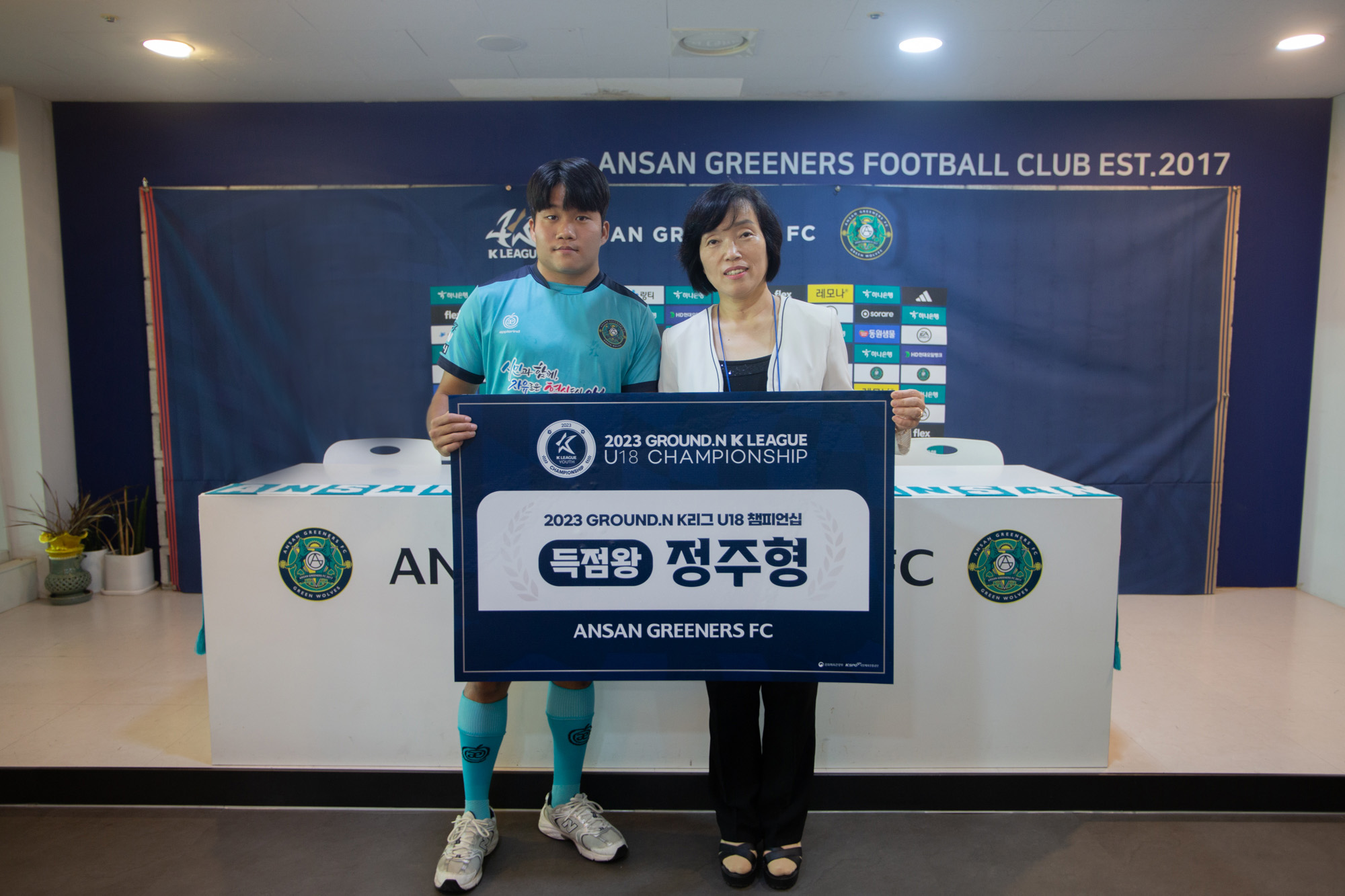 | 첨부파일 | 230810_안산그리너스FC, K리그 U18 챔피언십 득점왕 배출!(왼쪽부터 안산그리너스 U18 정주형, 대표이사 이정숙).jpg |