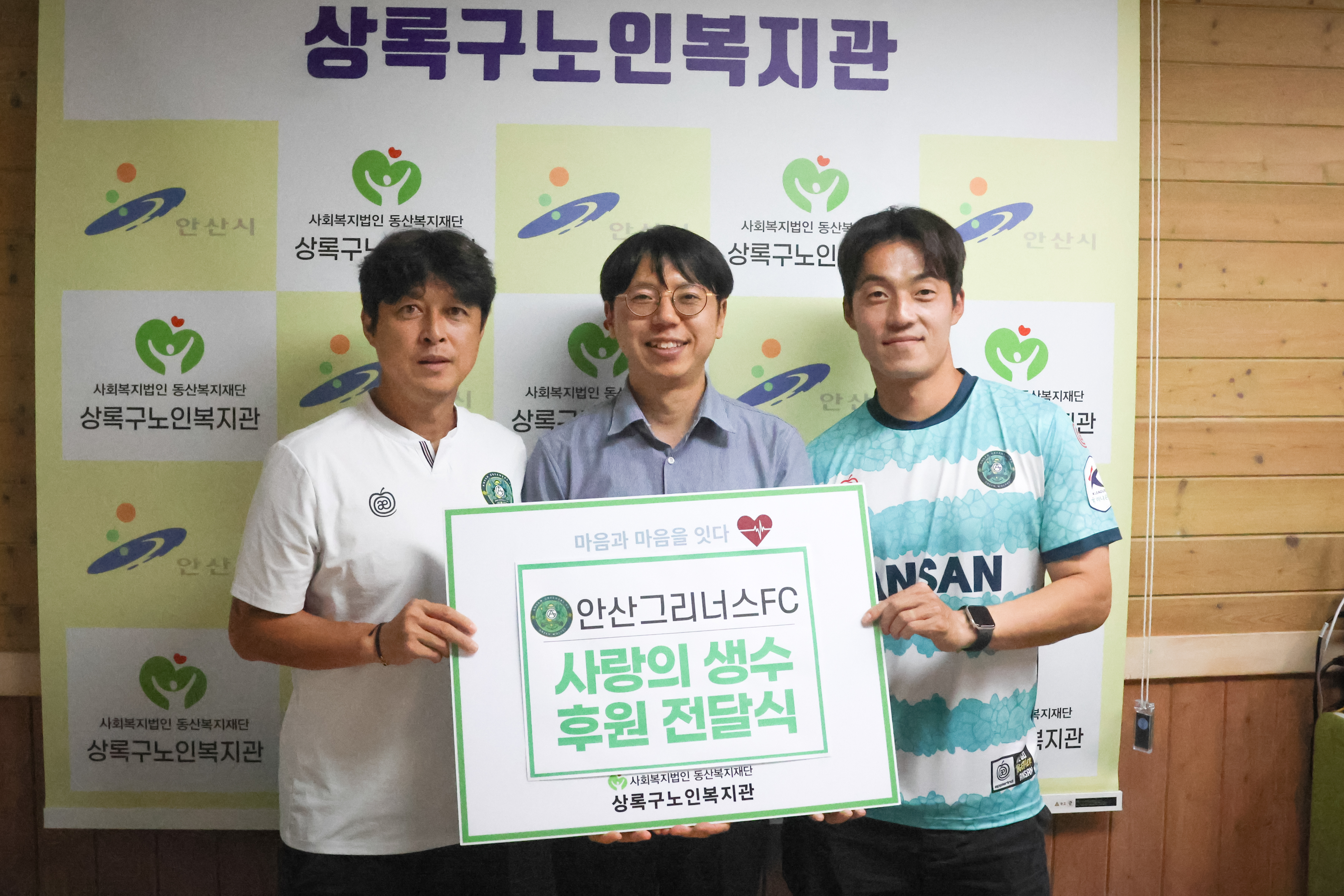 안산그리너스FC가 9월 26일(목) 상록구 노인복지관에서 ‘사랑의 물’ 나눔 행사를 통해 지역 어르신들과 만남의 시간을 가졌다. 시민이 행복한 구단을 내세운 안산그리너스FC는 창단 이래 꾸준히 지역 밀착형 활동과 함께 선한 영향력을 전파하고 있다.