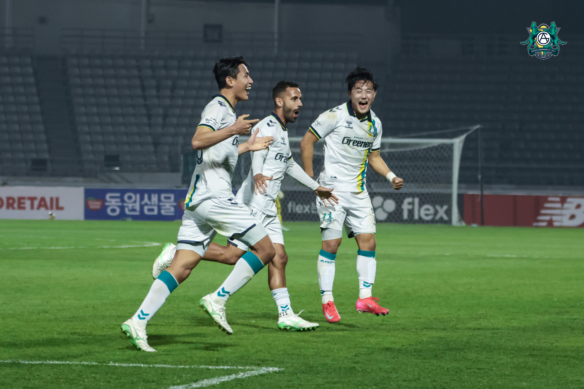 안산그리너스FC(이하 안산)는 10일(토) 오후 7시 서울 목동종합운동장에서 열린 ‘하나은행 K리그2 2025’ 11라운드에서 서울 이랜드 FC(이하 서울E)를 상대로 흐린 날씨 속 혈투 끝에 1-1 무승부를 기록했다. 안산은 3-4-1-2 포메이션을 가동했다. 주장 이승빈이 골문을 지켰고 장민준, 조지훈, 김현태가 4선을 맡았다. 박시화와 임지민은 좌우 윙백을, 손준석과 배수민이 3선을 지켰다. 송태성이 공격형 미드필더로 나섰고 최전방에는 김우빈과 류승완이 득점을 노렸다. 리그 2연승에 도전하는 안산 이관우 감독은 경기 전 인터뷰에서 리그 상위권 팀과의 경기이기에 끈끈한 조직력을 바탕으로 실리적인 경기 운영을 할 것을 예고했다. 특히 서울E의 에울레르의 공격력에 대한 대비와 동시에 주전 선수들의 이탈에도 높은 완성도를 가진 팀이라는 점을 강조하며 경계 태세를 늦추지 않았다. 안산은 초반부터 공격적으로 나서는 서울E에 강하게 부딪히며 주도권을 내주지 않기 위해 수비적인 운영을 했다. 동시에 역습을 노린 안산은 전반 막판, 골문 앞 중앙으로 연결된 볼을 상대 수비수로부터 탈취한 후 임지민과 류승완이 연속해서 슈팅을 시도했지만, 골키퍼의 선방에 막히며 아쉬움을 삼켰다. 양 팀 모두 날카로운 공격을 시도했지만 전반전은 0-0으로 마무리됐다. 안산은 후반전 시작과 동시에 박형우를 교체 투입하며 공격력을 끌어올렸다. 후반 3분, 왼쪽 측면에서 볼을 탈취한 박형우는 과감한 중거리 슈팅을 시도하며 팀의 분위기를 한층 끌어올렸다. 안산의 위협적인 공격에도 불구하고 후반 17분 선제 실점을 허용했다. 프리킥 상황에서 오스마르의 발끝으로 연결된 볼이 골문으로 흘러 들어간 것이다. 실점에도 불구하고 물러설 수 없는 안산이었다. 후반 27분, 박형우가 얻어낸 프리킥 상황에서 조지훈이 골대로 이어 붙인 크로스가 선제골을 기록했던 오스마르의 헤더에 굴절되며 구석으로 빨려 들어갔다. 경기를 원점으로 돌린 안산은 다시 수비적으로 운영하며 역습을 노렸지만 경기는 추가 득점 없이 1-1로 마무리됐다. 주목할 점은 오른쪽 스토퍼로 변신한 김현태의 활약이다. 지난 10라운드부터 4선으로 나선 김현태는 이날 경기에서 장민준, 조지훈과 함께 중앙 수비 라인을 형성하며 무승부에 일조했다. 김현태는 “본래 미드필더지만 센터백도 가능했다. 감독님이 준비하신 플랜 하에 좋은 분위기를 이어가 자신감이 차올랐다”며 이후 경기에 대한 기대감을 드러냈다. 한편, 귀중한 무승부로 자신감을 한층 끌어올린 안산은 오는 18일(일) 오후 4시 30분 리그 선두 인천을 홈으로 불러들여 경기를 치른다. |