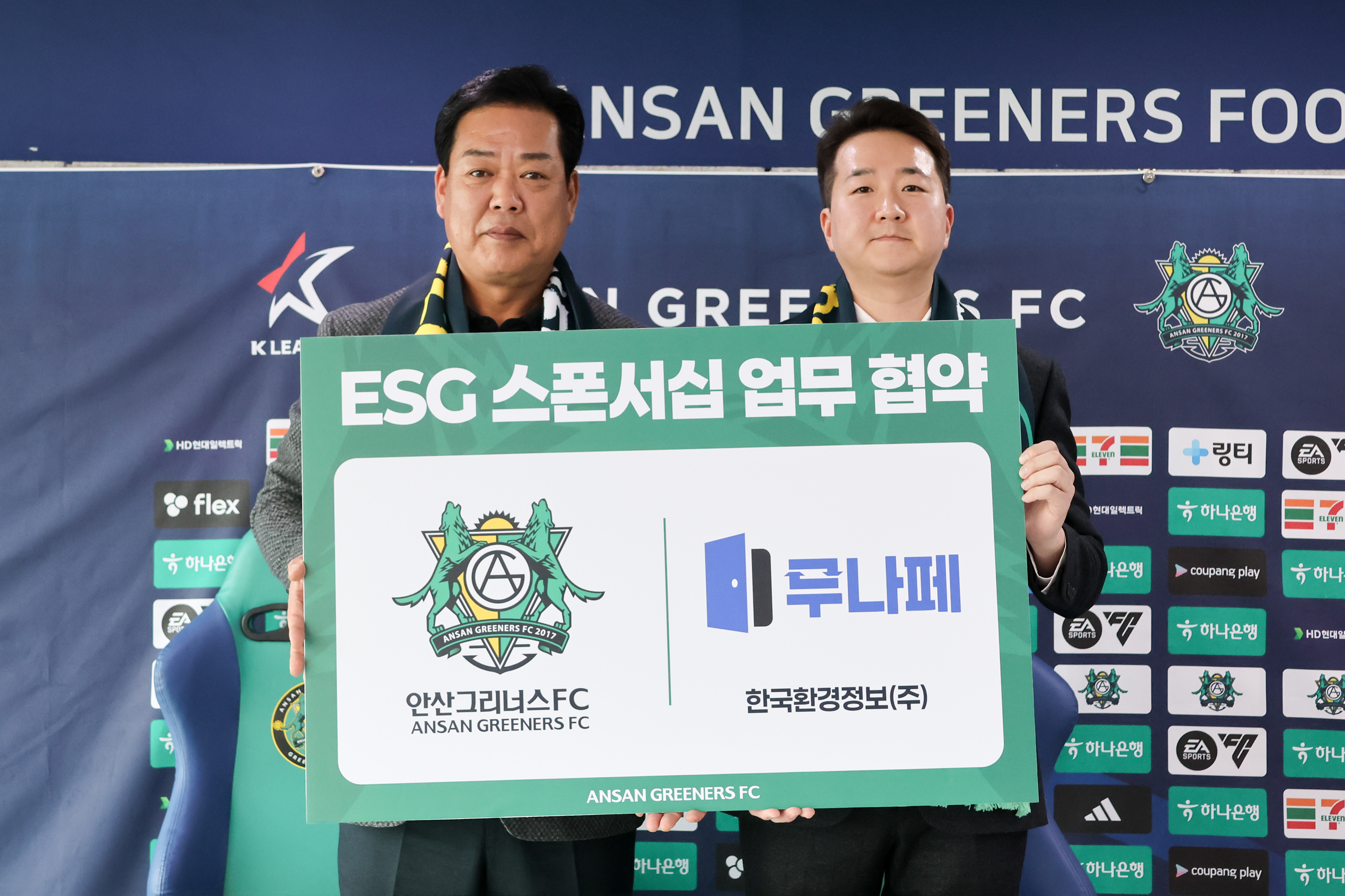 안산그리너스FC(이하 안산)와 한국환경정보 주식회사(이하 한국환경정보)가 ESG 경영 실천을 위한 ESG 스폰서십 업무협약(MOU)을 체결했다.