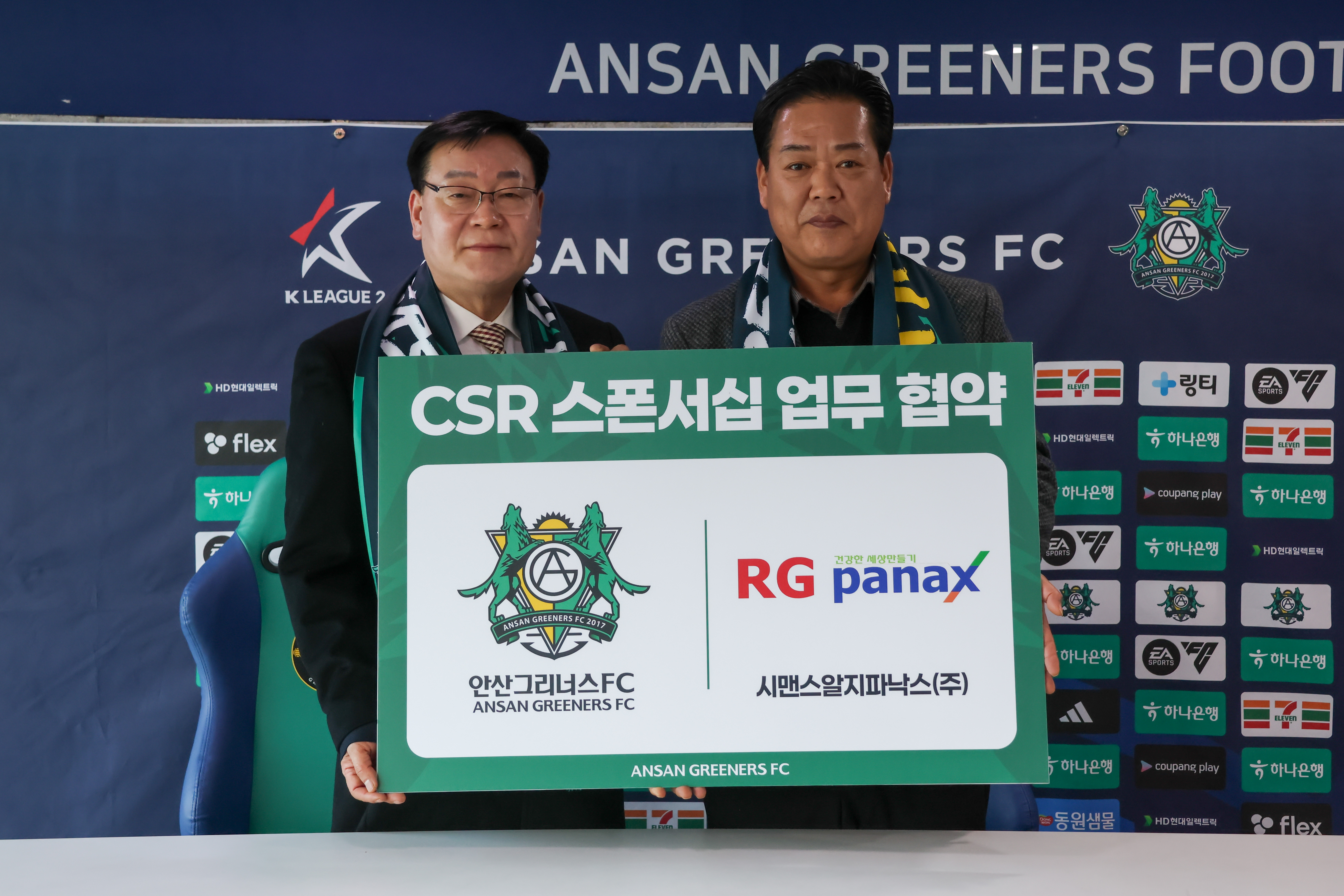 이날 협약식에는 알지파낙스 황진수 대표이사와 박서진 이사, 안산그리너스FC 김정택 단장, 최상익 사무국장, 이제영 대외협력팀장이 참석해 자리를 빛냈다. 이번 협약은 지역사회 연계 및 공익 활동을 중심으로 한 CSR 스폰서십 추진을 목표로, 팬 대상 프로그램과 홈경기 연계 활동 등을 통해 지역사회에 기여하고자 마련됐다.