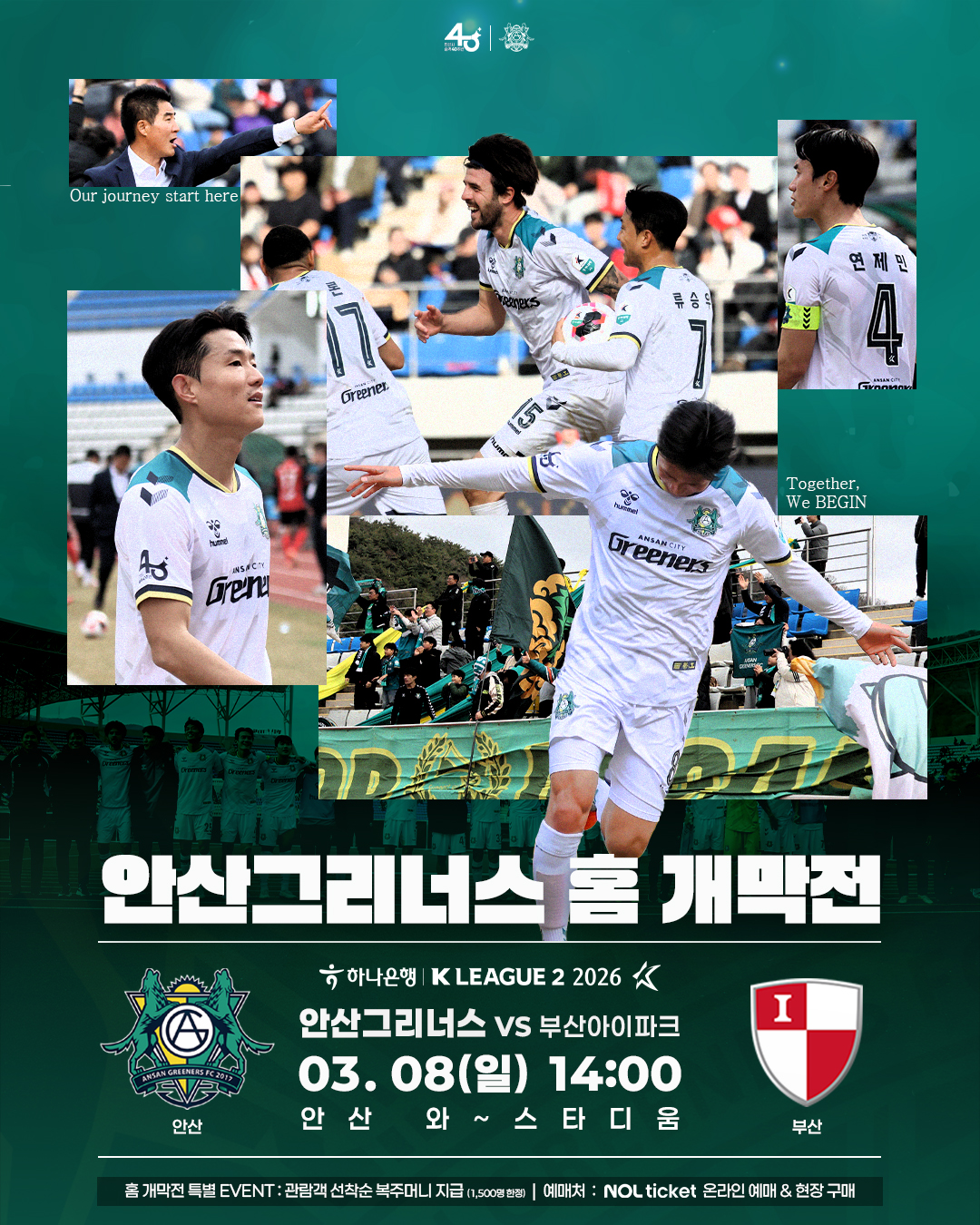 홈 개막전을 맞아 안산은 팬들을 위한 다채로운 현장 이벤트를 준비했다. 관람객 대상 선착순 복주머니(기념품) 증정을 비롯해 선수단 팬사인회, 전광판 이벤트, ‘그리너스 로또’ 등 참여형 프로그램이 진행된다.